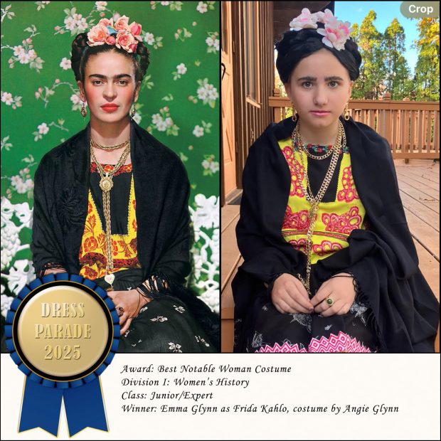 It’s The Year of the Two Fridas! Angie always creates terrific costumes for Emma, and this year is no exception. That blouse is especially good. Congratulations, Angie and Emma!