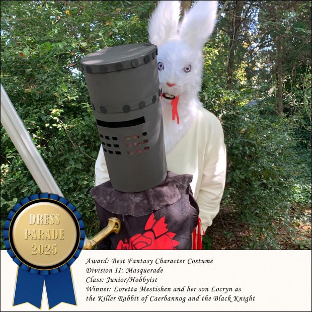 Winner, junior/hobbyist class: Loretta Mestishen and her son Locryn as the Killer Rabbit of Caerbannog and the Black Knight, costumes by Loretta Mestishen.