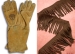 1. Scully western blouse in brown plus optional brown suede fringe. The blouse is also available here and here. The only thing we suggest you add to it is a little bit of brown suede fringe, which we also use on the gloves (next). It’s not required, but it does help tie it all together and make it look like one of Annie’s outfits. Use Res-Q tape or Aleene’s Tack-It Over & Over to temporarily attach a row of fringe to the collar. We added a little bit of fringe at each shoulder for good measure.