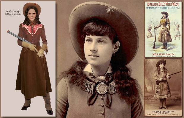 Annie designed and sewed her own costumes, combining practicality with a frontier aesthetic and a strong sense of personal modesty. Her outfits were never even a tiny bit revealing, but they gave her the freedom of movement she needed. The pieces we suggest, from left to right: