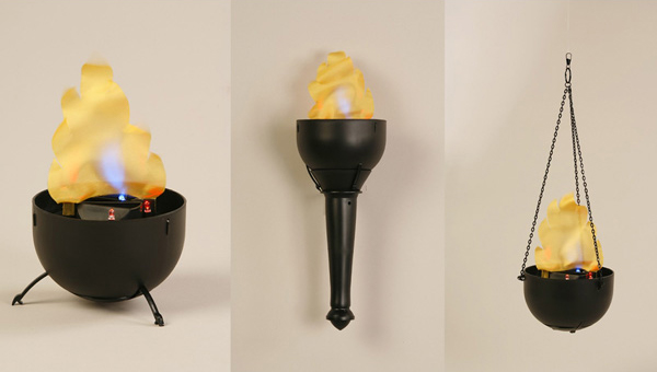 6. Faux Flame 4-in-1 Torch. This is a great way to carry your sacred fire with you without accidentally burning anything up. It’s a battery-operated faux flame torch that’s convertible; you can hold it as a torch, set it on a table, hang it on the wall, or suspend it from a chain.