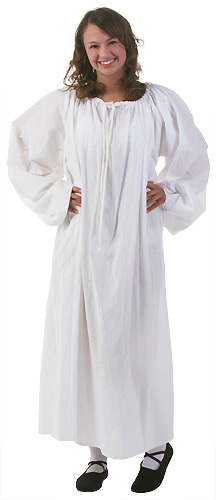 2. Full-length chemise in white, cream, or yellow. The early Irish leine (chemise or tunic) was pretty simple. It could be sewn with straight sleeves, like this, or it could be a sleeveless unsewn tunic pinned at the shoulders, like the Greeks wore (see #3). By the 1500s the Irish were famous for dying their leines with saffron, but it’s not clear when this preference for yellow developed.