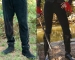 3. Men’s black velvet pants or women’s black velour pants. The men’s pants are stretchy but not too snug; the women’s pants are tight fitting.
