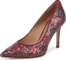 4. Burgundy sequin pumps. You want closed toe pumps with stiletto heels, in a color that’s as close to your dress as you can get.