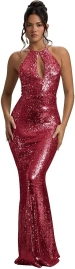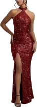 2. Alternate choice: Halter neck sequin gown with front slit. The halter on this dress is more vintage looking, but the front slit is totally modern. Well, you can’t win ’em all.