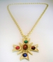 6. Medieval style necklace. Eleanor of Aquitaine was the richest woman in Europe and known for her love of jewels, so bling is good. Just look for medieval type pieces: cabochon jewels (they didn’t have faceted gemstones back then), bold shapes like the quatrefoil, that sort of thing. We found this piece on eBay.