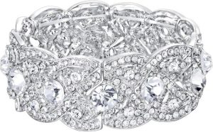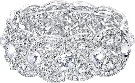 5. Stretch silver bracelet with rhinestones. This bracelet is an inch wide and looks great over gloves.