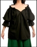 1. Black chemise top. This came from an eBay seller who is no longer in business; she advertised her items as “renaissance” and “pirate wench” outfits. It’s basically a sort of peasant blouse with an elasticized top. You can wear it a little off your shoulders for an 1830s look. Tuck it into your skirt and cinch it all with the belt.