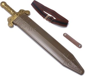 4. Short sword with sheath. At 19 inches long, this can serve as an excellent stand-in for the acinaces, the Scythian short sword. This one even comes with a handy strap so you can loop it onto your belt. (Wear a leather belt.)